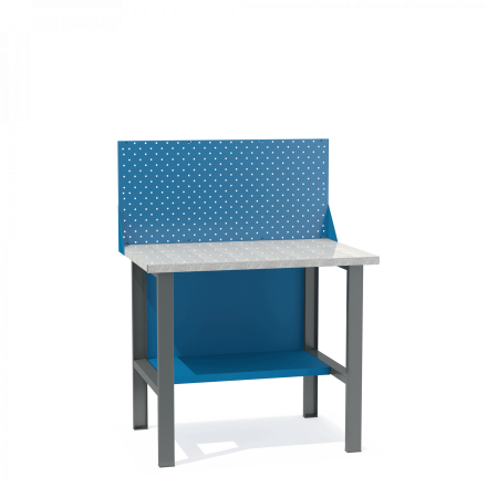 Верстаки имеют надежную модульную конструкцию с усиленной столешницей (плита МДФ 25 мм, покрытая листом оцинкованного металла). Дополнительно верстаки всех серий можно укомплектовать инструментальной панелью (экраном и навесными элементами для хранения инструмента).
